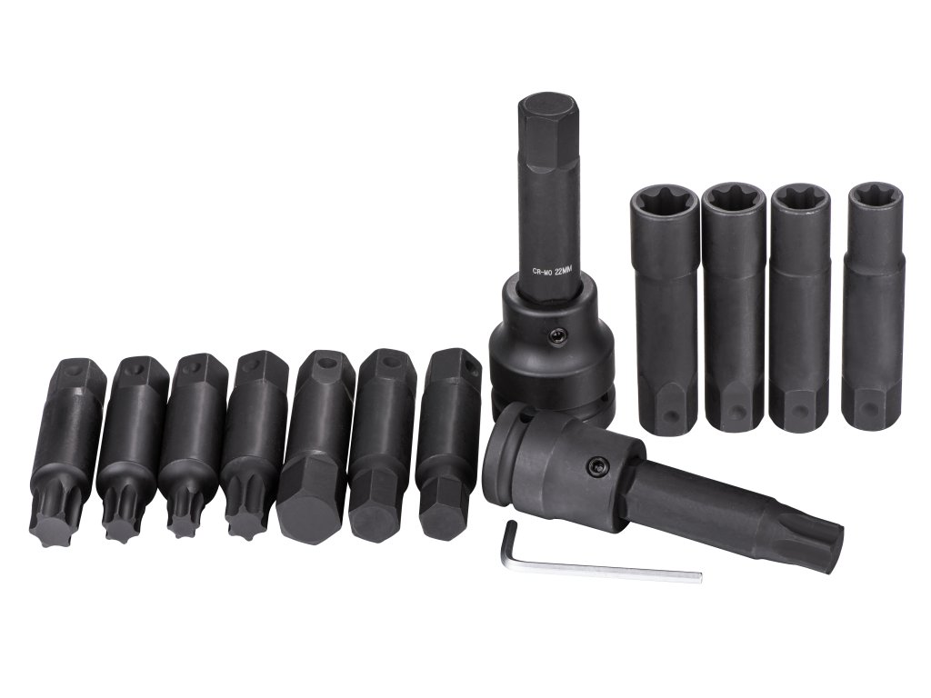 Rázové hlavice TORX, TORX-E, Imbus, velikosti 3/4" a 1", sada - QUATROS QS50472