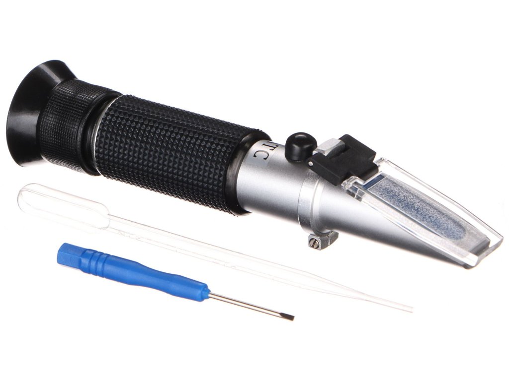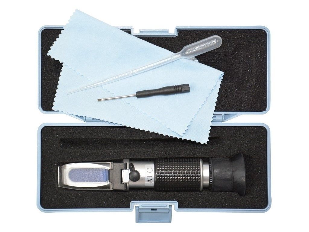 Kvalitní refraktometr / brixmetr s automatickou teplotní kompenzací je určený především pro měření obsahu cukru v ovocných koncentrátech/džusech, sirupech, džemech, kondenzovaném mléku apod. v rozsahu 0 - 32 % Brix. Refraktometr je přístroj pro měření indexu lomu paprsku světla a takto lze určovat složení kapalných směsí či čistoty látek. Brix se používá pro měření koncentrace rozpuštěné látky (především cukru) v ovoci, v zelenině, v džusech, v moštech, v nealkoholických nápojích apod. % Brix je univerzální jednotka pro obsah cukru vztažená na sacharózu (řepný cukr), charakterizuje koncentraci sacharózy v hmotnostních procentech, 1 % Brix = 1 g sacharózy (řepného cukru) ve 100 g např. moštu. ATC / systém automatické teplotní kompenzace (při teplotě 0°C až 30°C není nutná žádná kalibrace).