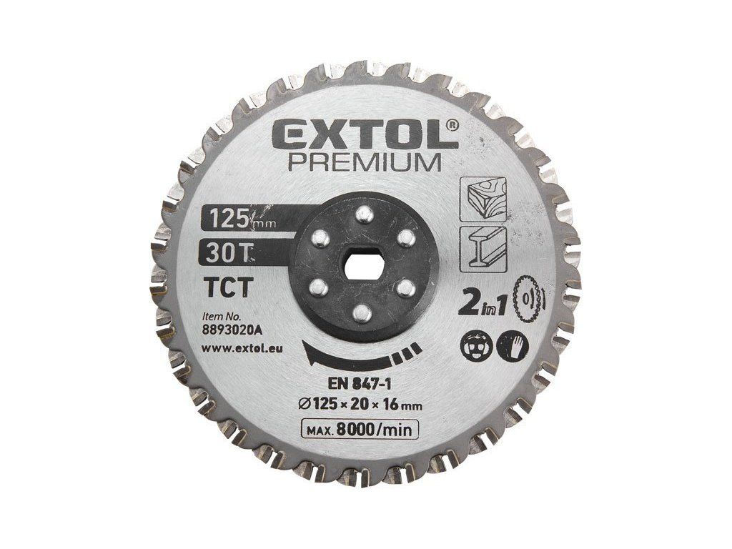 Řezný kotouč na kov a dřevo 125x20x16 mm, pro dvoukotoučovou pilu E8893020 - EXTOL PREMIUM