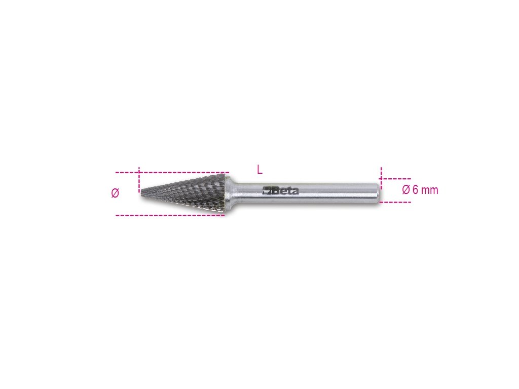 Pilník rotační z karbidu, 426md/t16, kuželový 16 x 25 x 70 mm, stopka 6mm