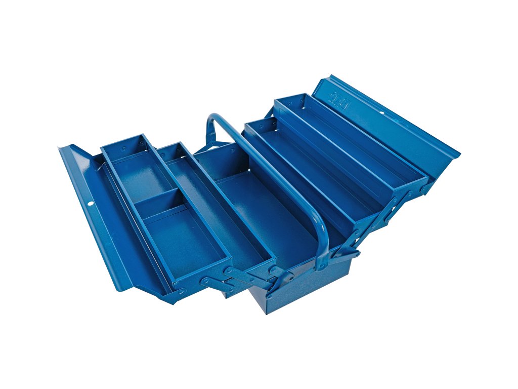 Plechový kufr - rozkládací montážní bedna, tzv. basa na nářadí, 42x20x20 cm, s 5 přihrádkami, prázdná - BGS technic 33000