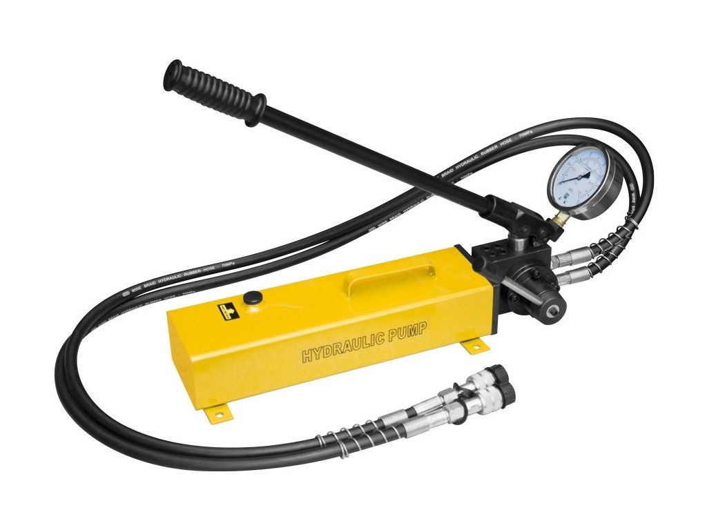 - kvalitní dvourychlostní ruční hydraulická pumpa pro pohon dvojčinných hydraulických válců, různých hydraulických zařízení