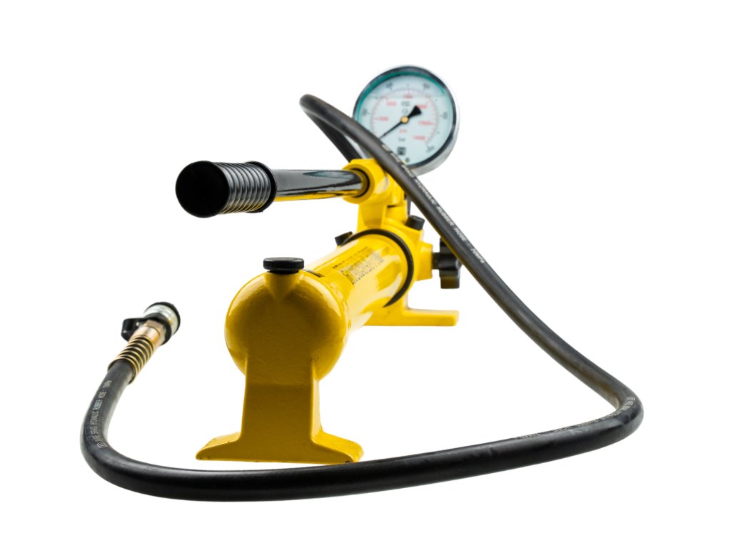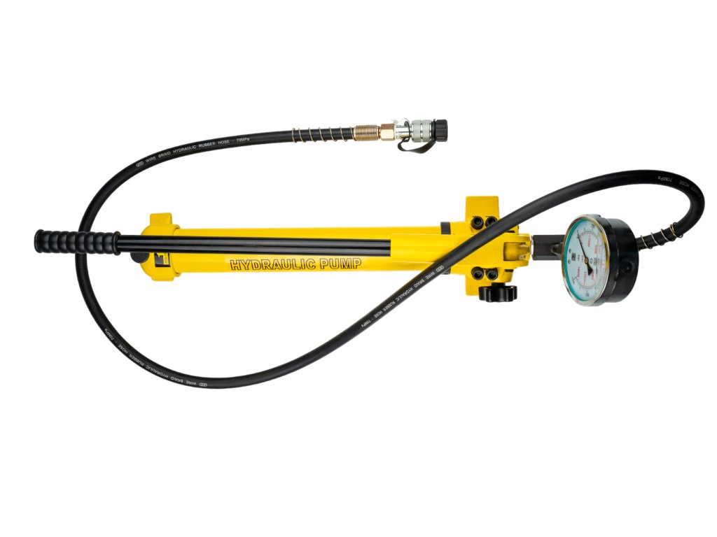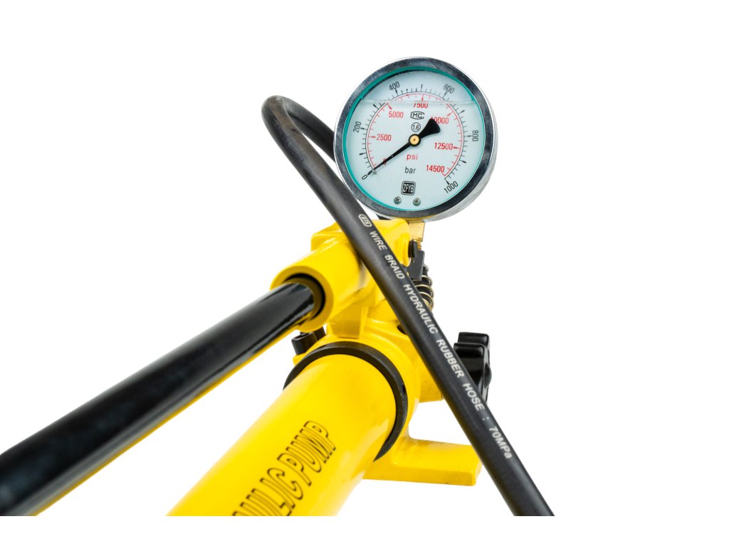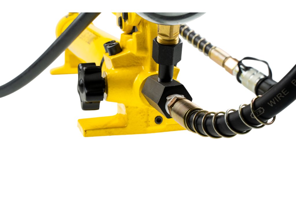 Ruční dvourychlostní hydraulická pumpa s ovládací pákou a vysokotlakou hadicí s rychlospojkou, vstupní tlak 20 bar, max. pracovní tlak 700 bar, hadice 120 cm – Genborx HHB-700C....