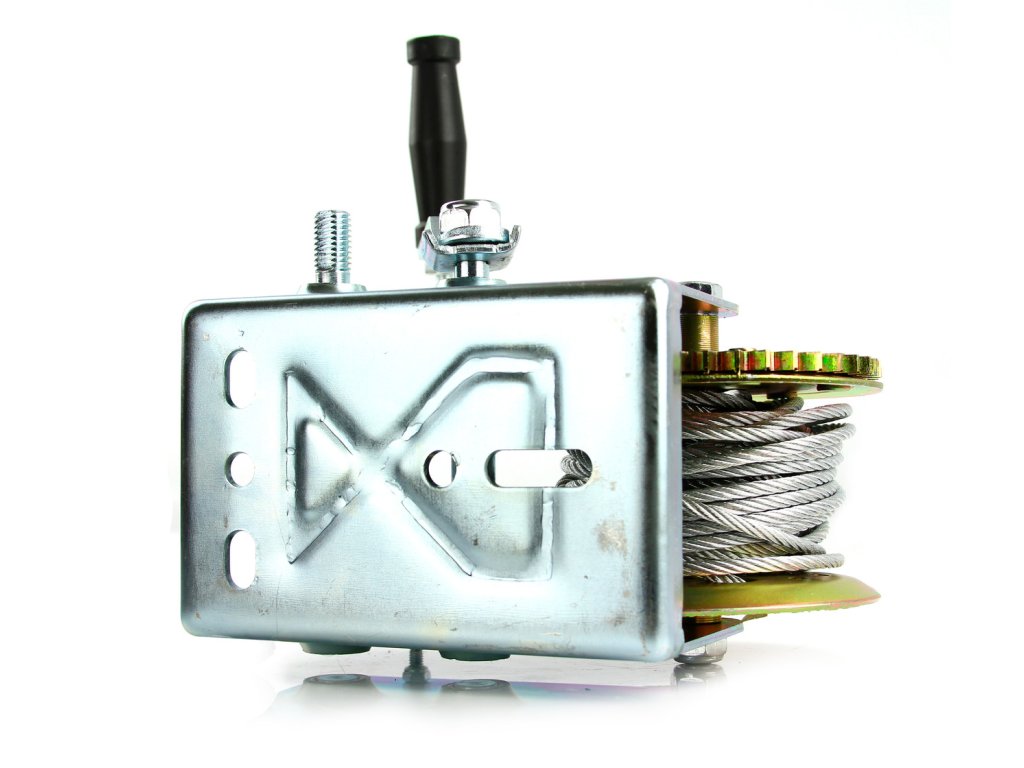 Ruční lanový naviják s maximálním zatížení 1136 kg, délka lana 10 m, 2 rychlosti.