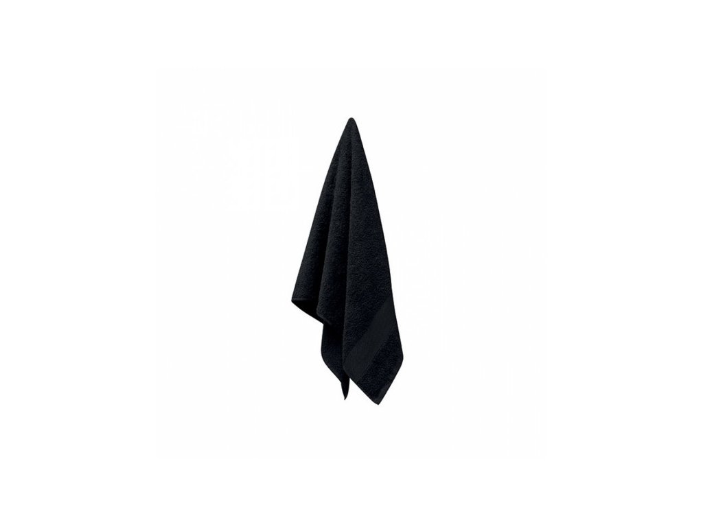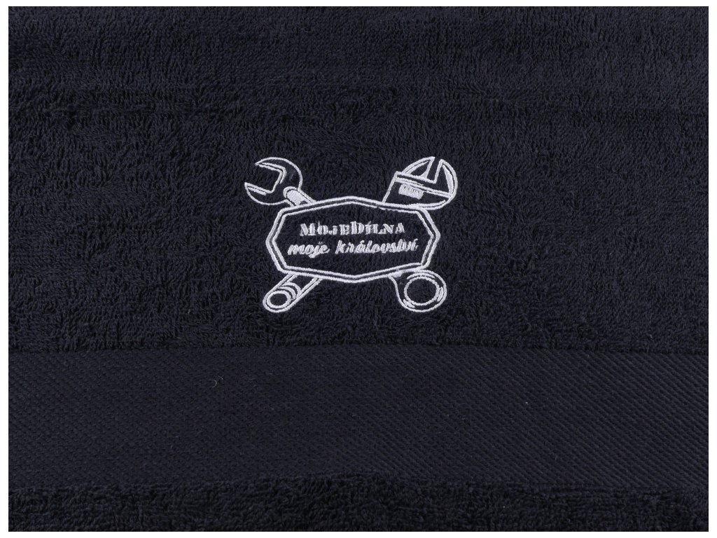 Ručník, černá barva, s vyšitým logem "MojeDílna moje království", 100 x 50 cm.
