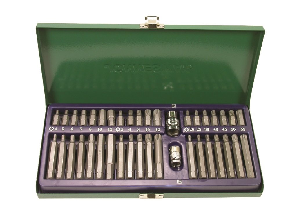 Sada 40 bitů velikosti 10 mm s profily Imbus, Torx a XZN, v plechové krabičce – JONNESWAY S29H4140S