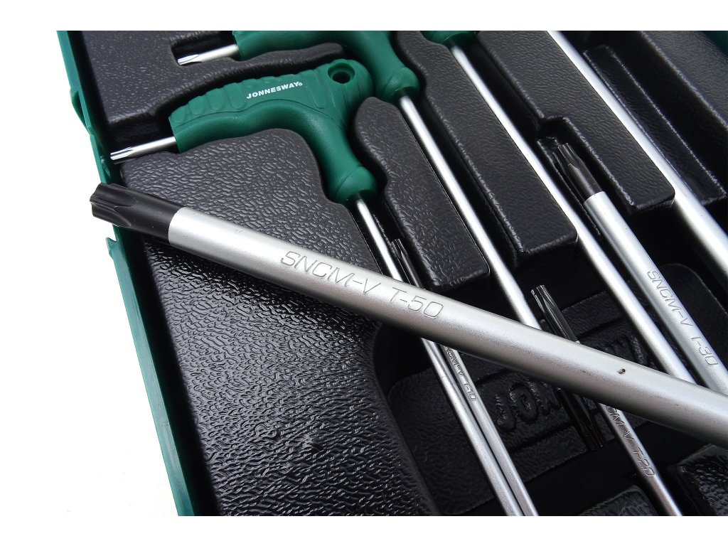Sada 8 zástrčných klíčů TORX, vel. T10-T50, s T-rukojetí v kazetě - JONNESWAY H10MT08SP