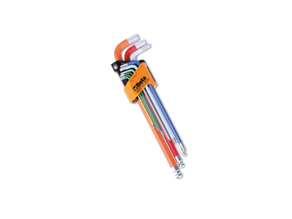 SADA 9 BAREVNÝCH ŠESTIHRANNÝCH ZÁSTRČNÝCH KLÍČŮ S KULIČKOU, 96BP-CL/SC9