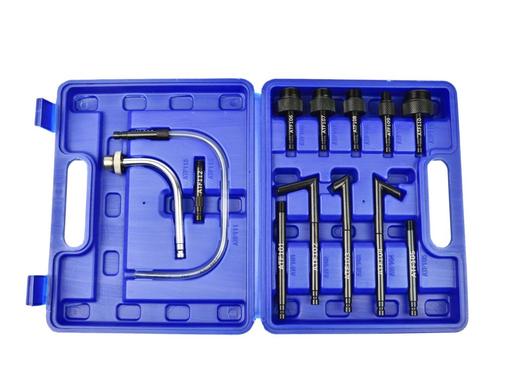 Sada speciálních adaptérů pro výměnu a doplňování oleje v automatických převodovkách nejoblíbenějších značek osobních vozidel. Sada se skládá ze 13 adaptérů, které umožňují provozovat převodovky různých značek osobních automobilů.