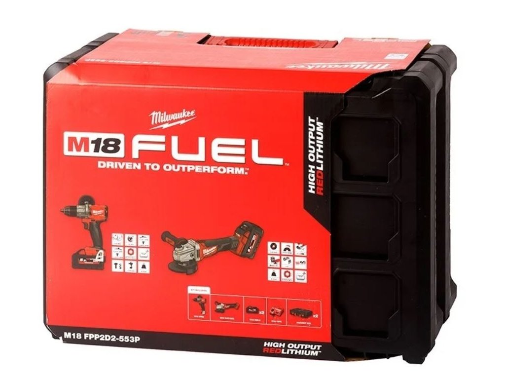 Sada aku nářadí 18V: příklepová vrtačka, úhlová bruska v boxu - Milwaukee M18 FPP2D2-553P
