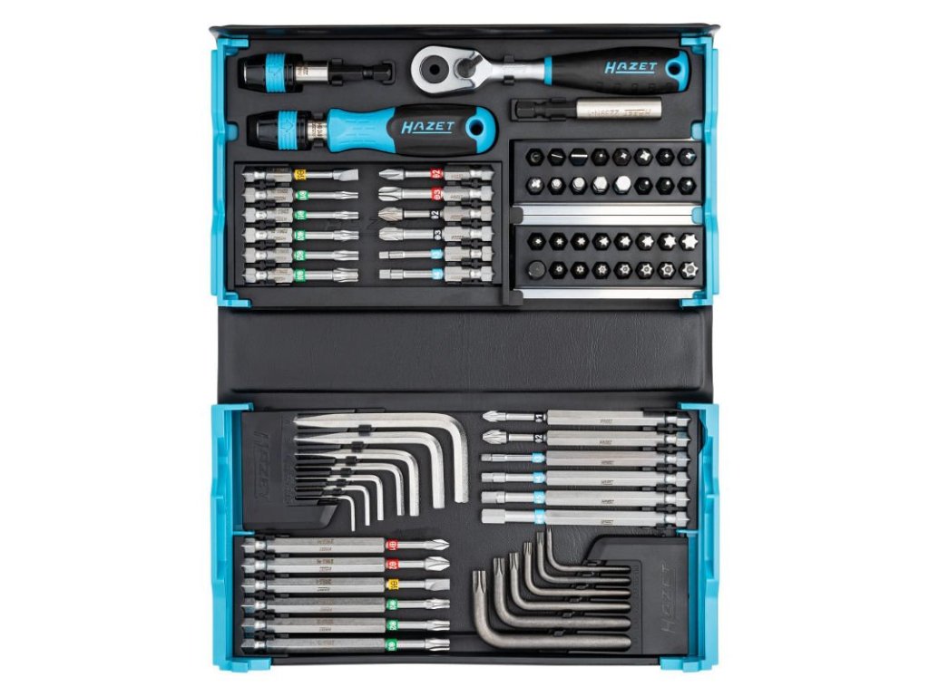 Sada bitů, úhlových šroubováků a ráčny 1/4“, 73 dílů v pouzdře, 210x118x50 mm – HAZET 2200SC-31.