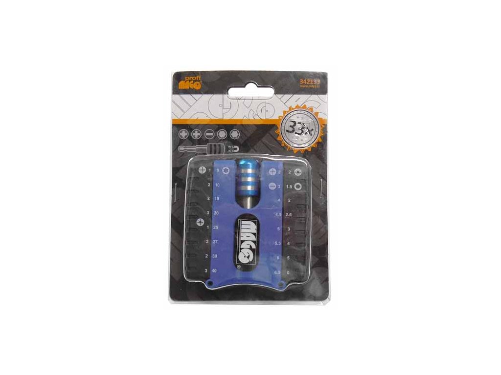 Sada bitů – ploché, křížové, TORX, šestihran, s rychloupínačem na opasek, 33 ks - MAGG 342133.