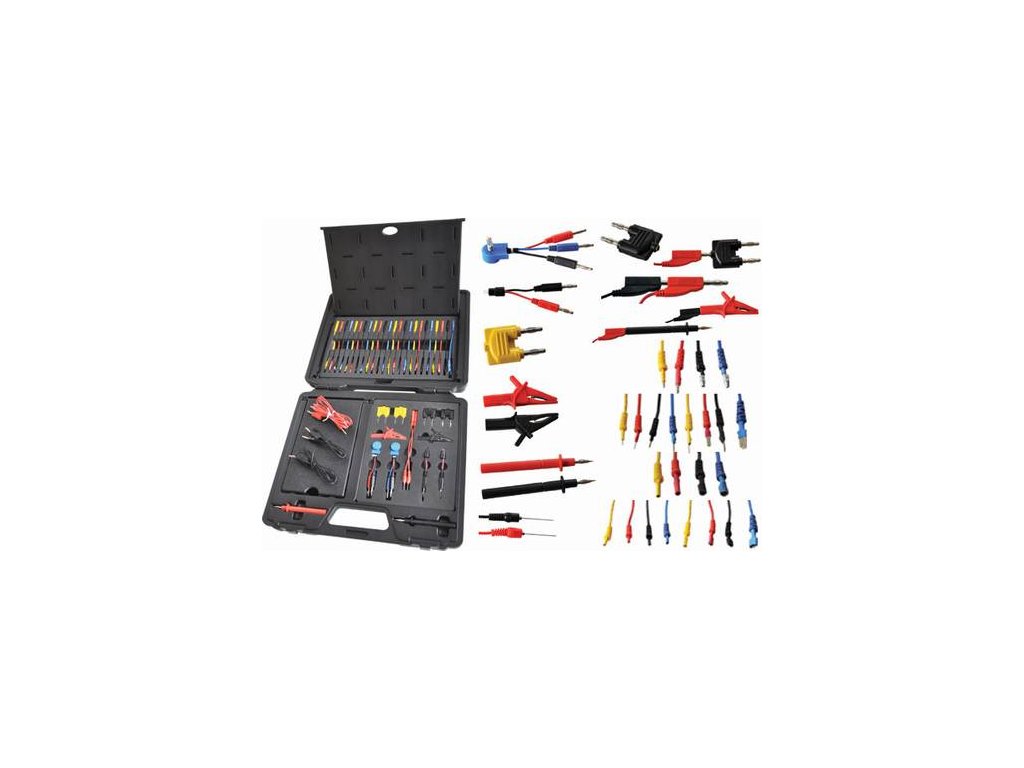 Obsáhlá víceúčelová sada diagnostických/testovacích kabelů a konektorů přehledně uspořádaných v plastovém kufříku je výborným a v mnoha případech nezbytným doplňkem většiny standardních multimetrů, ale zejména automobilových multimetrů a osciloskopů. Měření je s pomocí v sadě obsažených kabelů/konektorů rychlejší a snadnější je připojování testovacích přístrojů. Různé kabely ze sady jsou upravené pro použití na evropských, japonských, korejských a rovněž amerických automobilech.