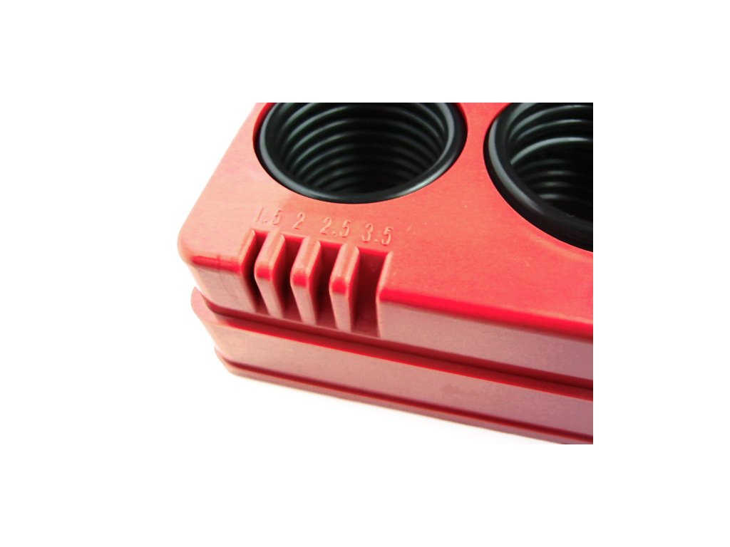 Na krabičce je praktická měrka, na které lze tloušťku o-kroužku ověřit.