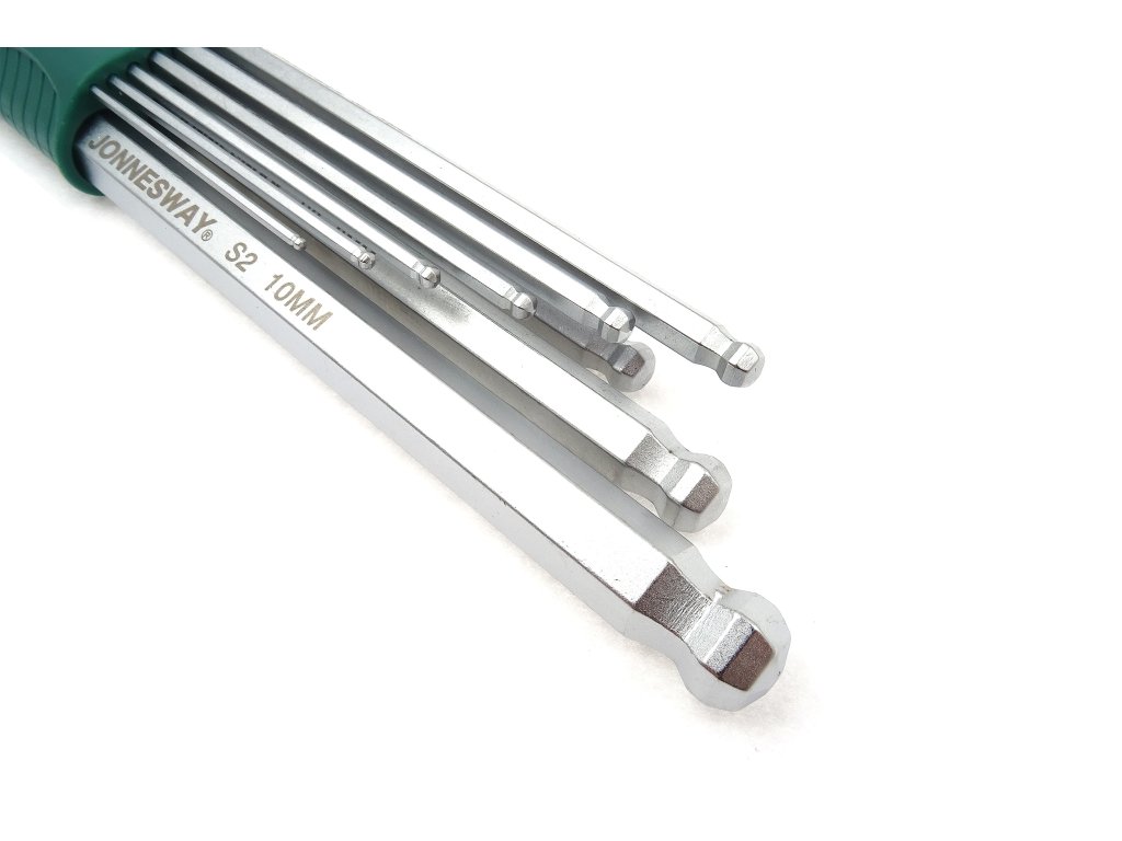 Sada klíčů Imbus s kuličkou a protiskluzovou drážkou, dlouhé, 9 ks - JONNESWAY H06SA109S