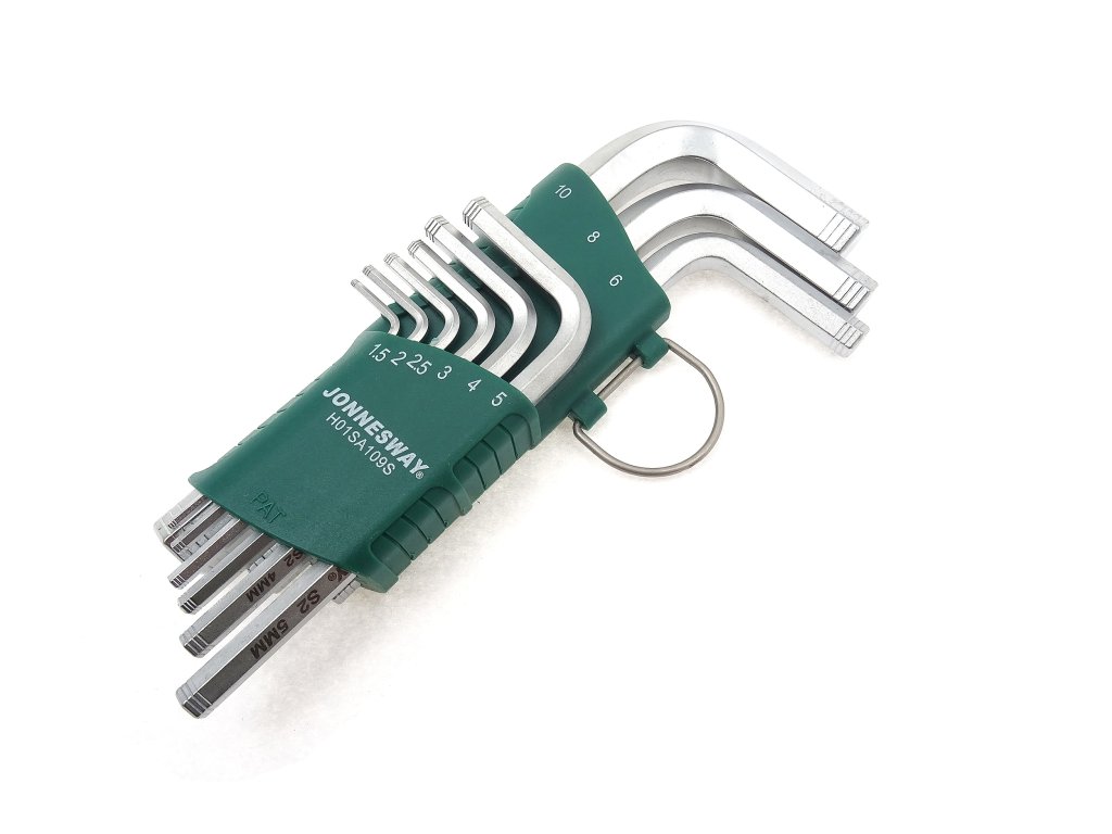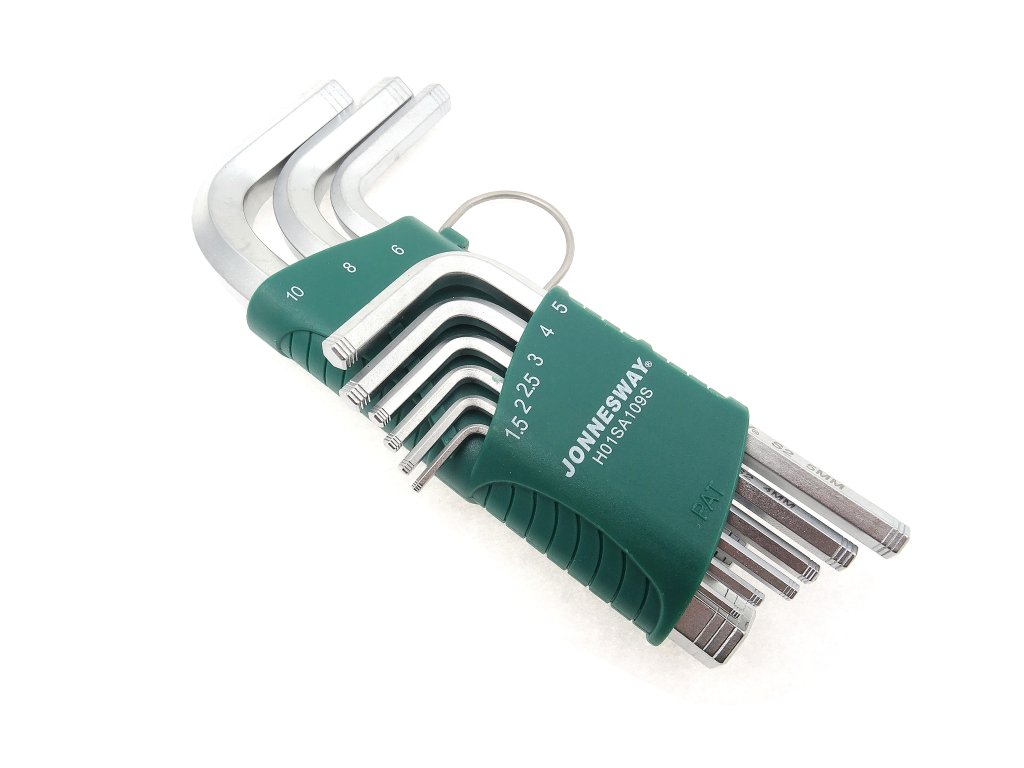 - délka klíčů: 9 cm (nejmenší H1.5) až 23 cm (největší H10)