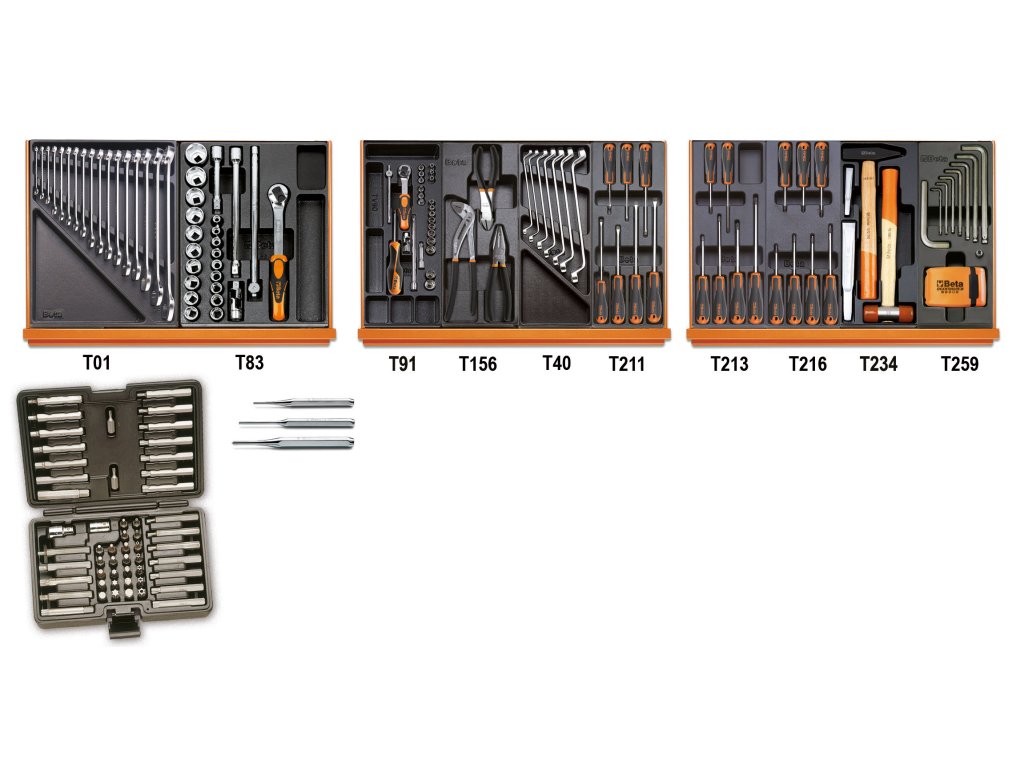 Sada modulů - 197 ks nářadí pro servis a údržbu, 3 plastové moduly - Beta Tools