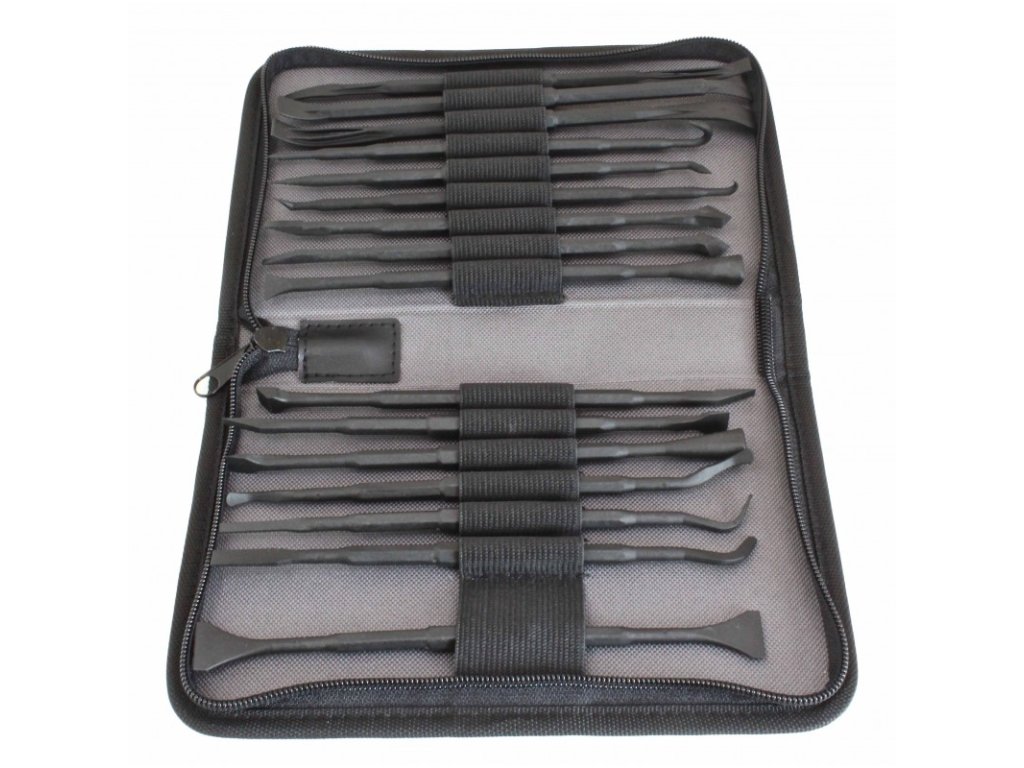 Sada multifunkčních, oboustranných pák, pro demontáž spon, odstraňování starých těsnění a nečistot, demontáž těsnících kroužků, O-kroužků, práci v těsných mezerách interiéru vozu a další různorodé práce, 16 ks v látkovém organizéru – ASTA A-PSS17.
