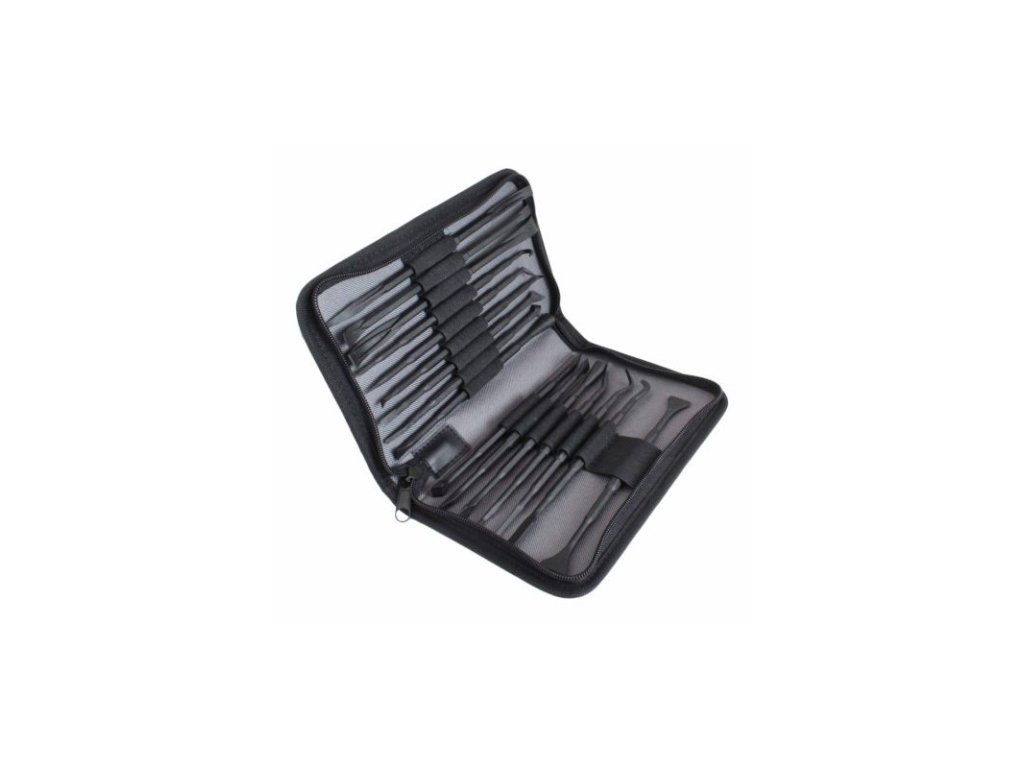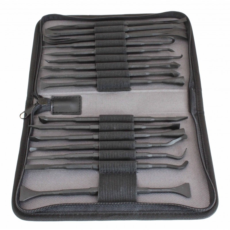 Sada multifunkčních, oboustranných pák, pro demontáž spon, odstraňování starých těsnění a nečistot, demontáž těsnících kroužků, O-kroužků, práci v těsných mezerách interiéru vozu a další různorodé práce, 16 ks v látkovém organizéru – ASTA A-PSS17.