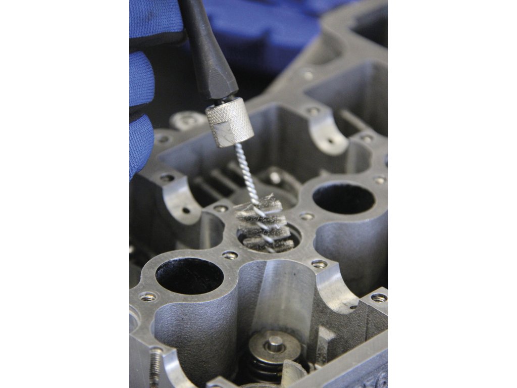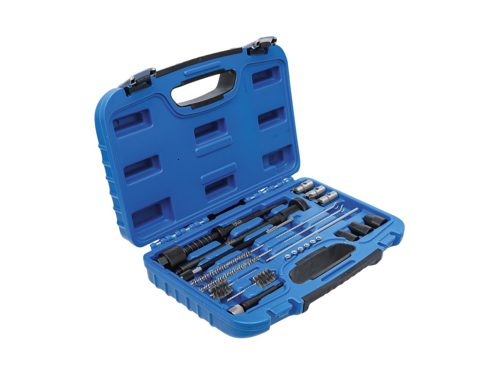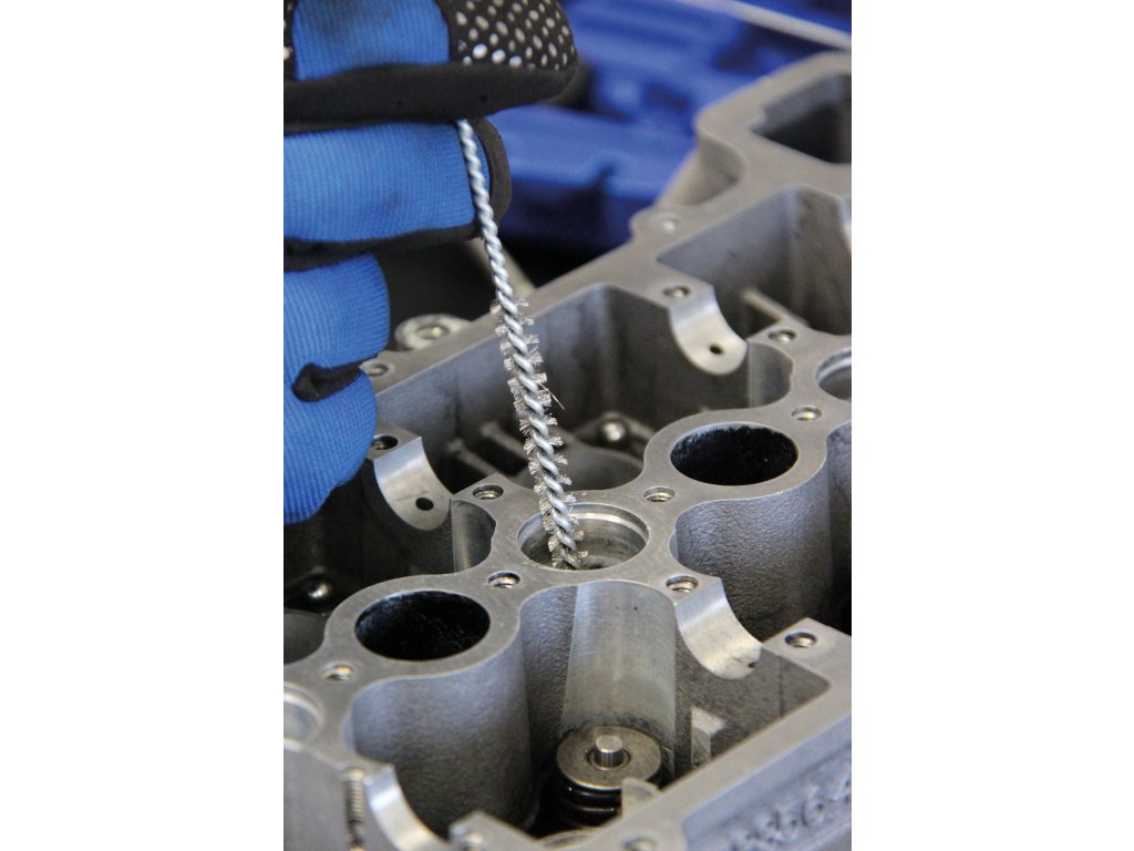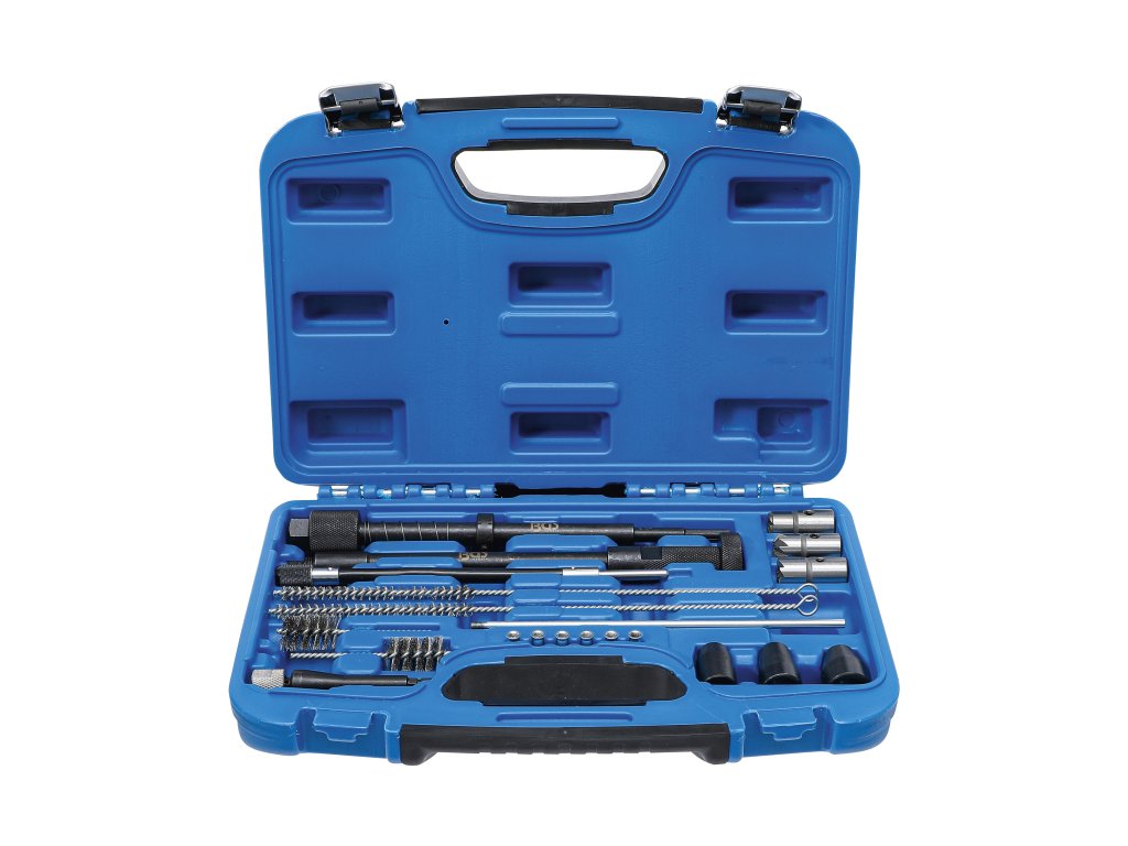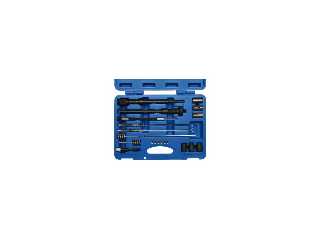Praktická sada obsahuje vše potřebné pro čištění šachet a úpravu sedel vstřikovačů.