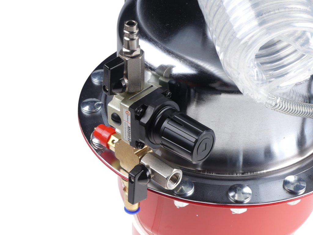 • Plnící tlaková nádoba s hadicí, manometrem a připojením na kompresor