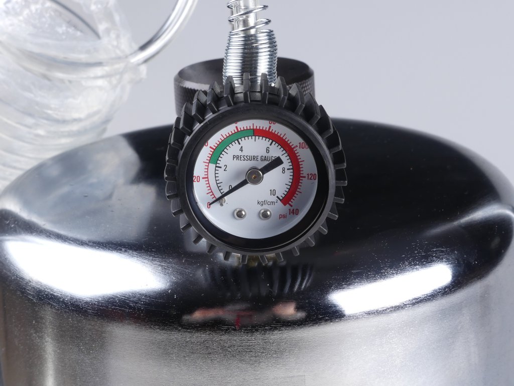 Součástí přístroje je ruční regulátor tlaku s manometrem.