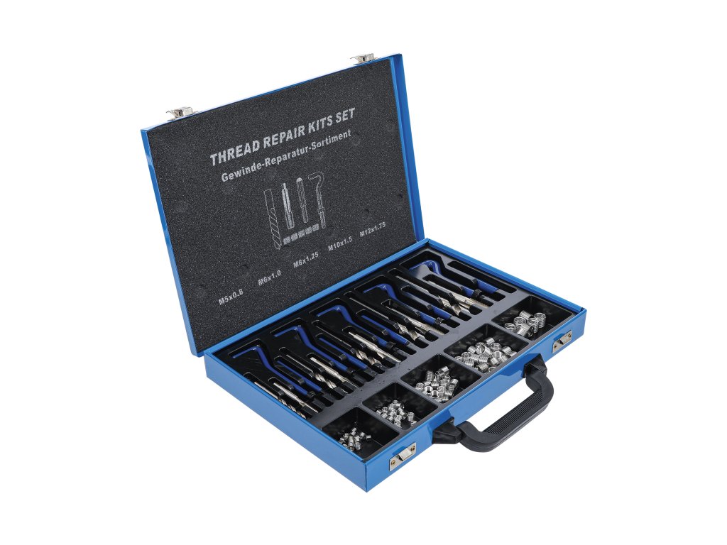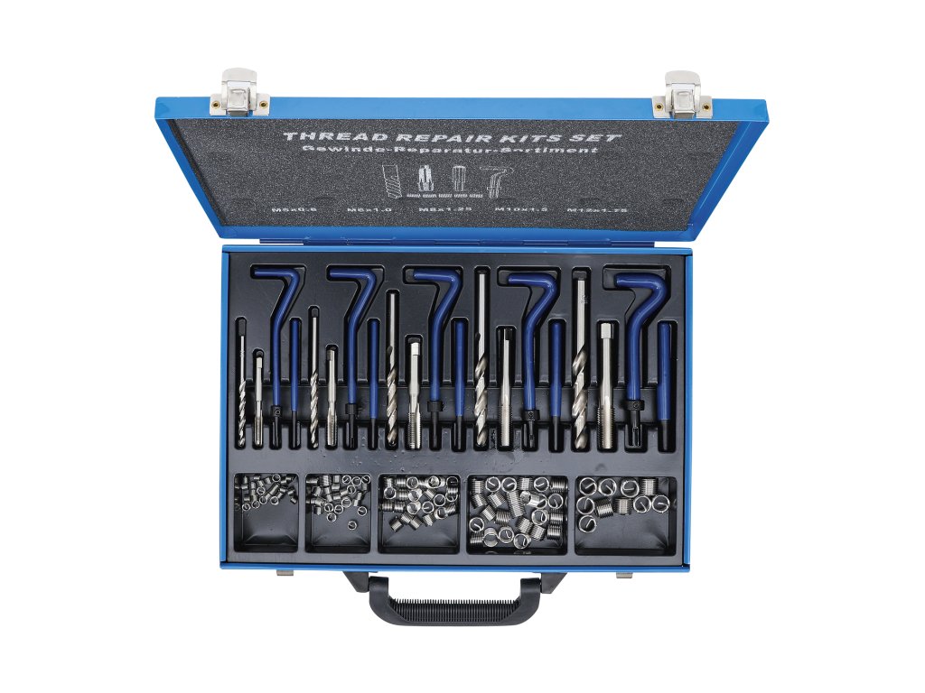 Opravná sada na nejběžnější rozměry metrických závitů obsahuje vše potřebné pro práci.