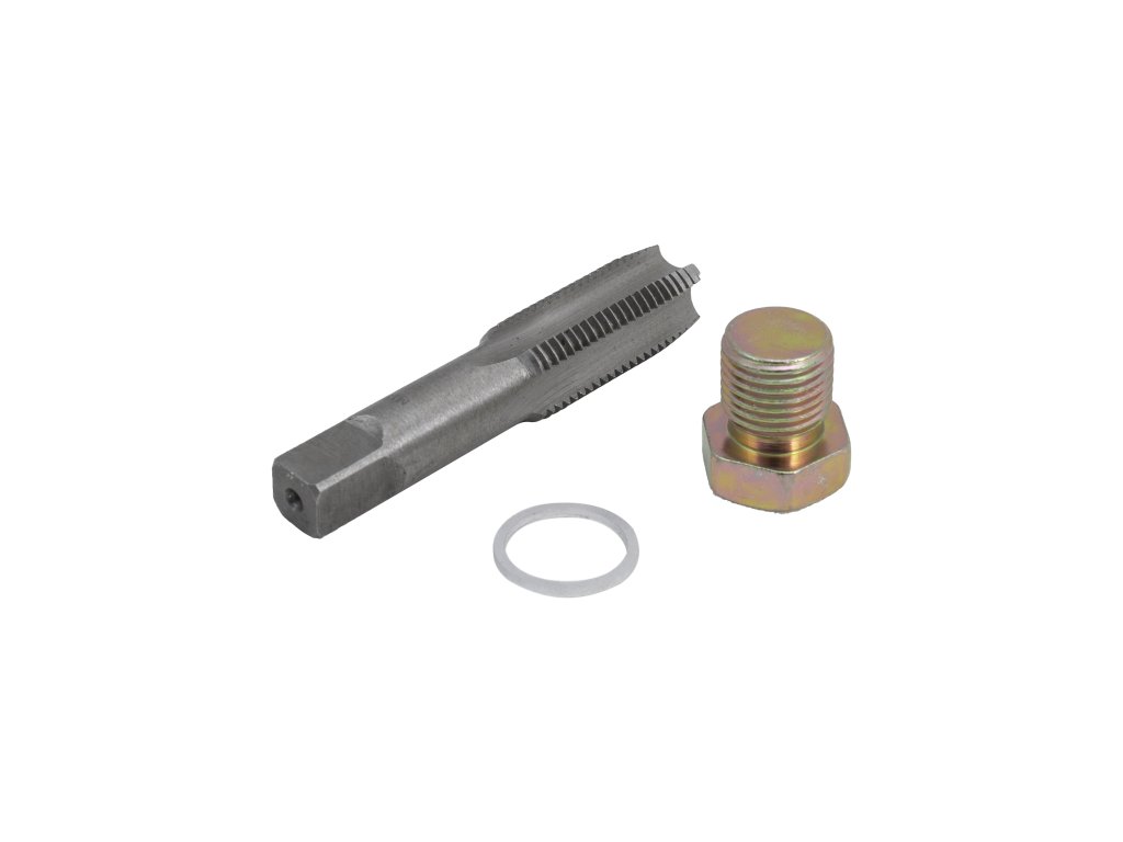 Sada závitníku a šroubů na opravu poškozených a stržených závitů olejových van. Závitníkem snadno a bez demontáže vany zvětšíte poškozený závit o jeden milimetr.