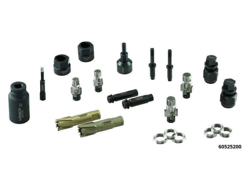 Sada zajišťuje šetrné odšroubování snímače, co nejlepší utažení snímače v závitu, vyčištění závitu a opravu závitu s vložením nového závitového pouzdra.