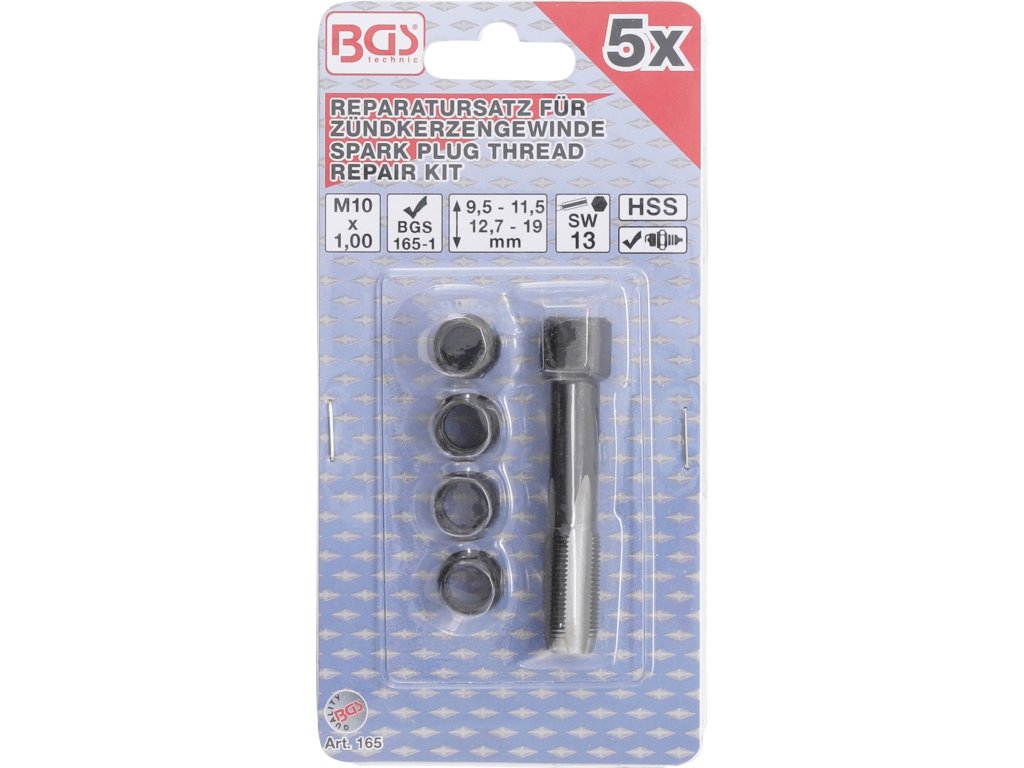 Sada na renovaci poškozených nebo stržených závitů zapalovacích svíček M10 × 1, vč. 4 ks závitových vložek – BGS technic 165