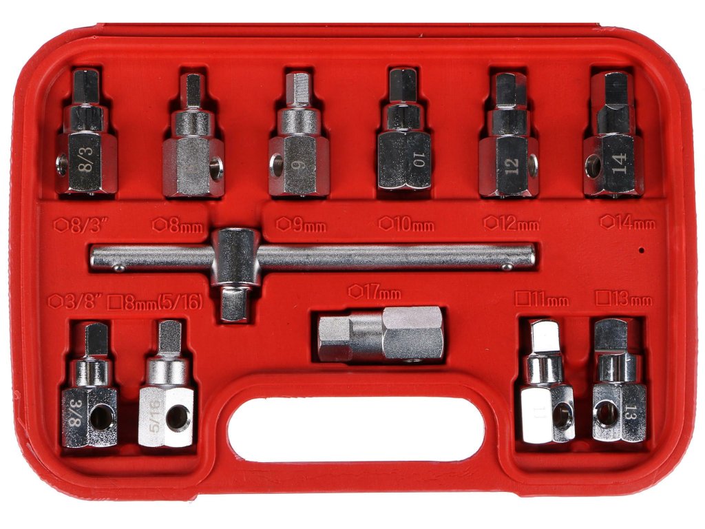 Sada na vypouštění oleje MECHANIC OIL DRAIN SET, hex + čtyřhran, 12 ks, v plastovém kufříku - SIXTOL SX1175.