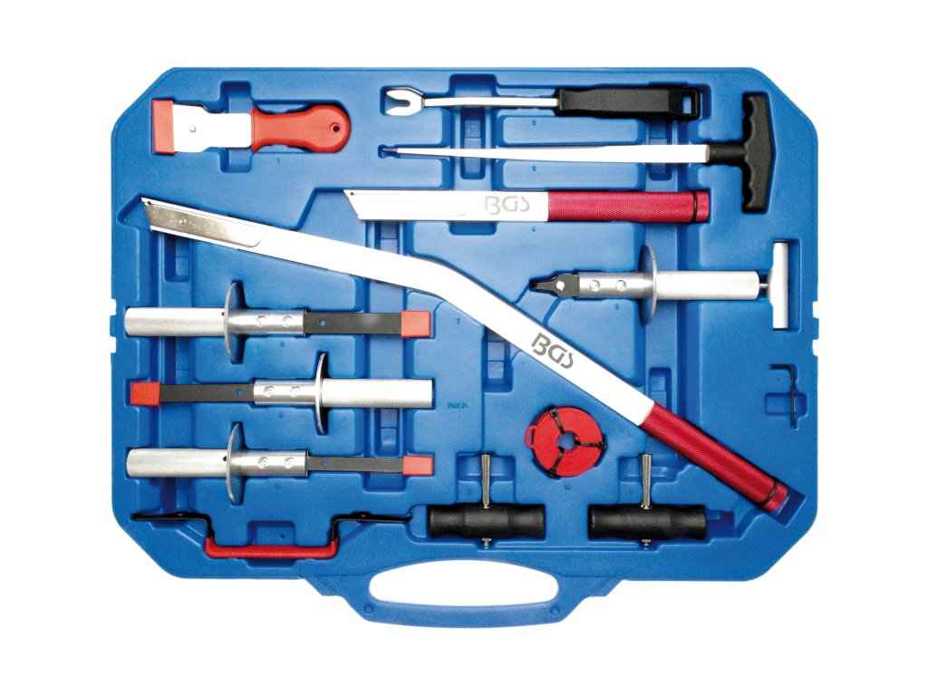 Přípravky na demontáž - vyřezání lepených autoskel z karosérie, 14 dílů v plastovém kufru - BGS technic 69500