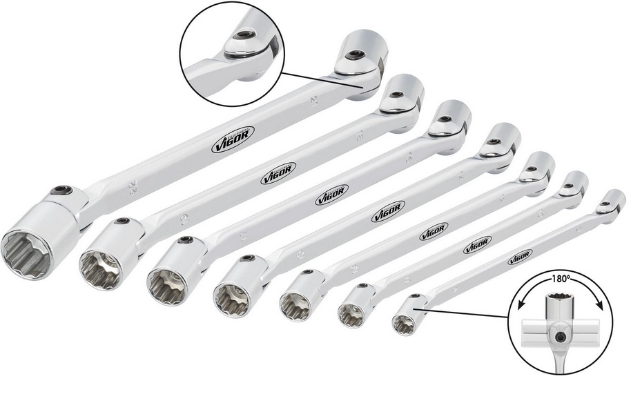 Sada nástrčných klíčů se zdvojeným kloubem i šestihranem, 7ks - VIGOR V4194