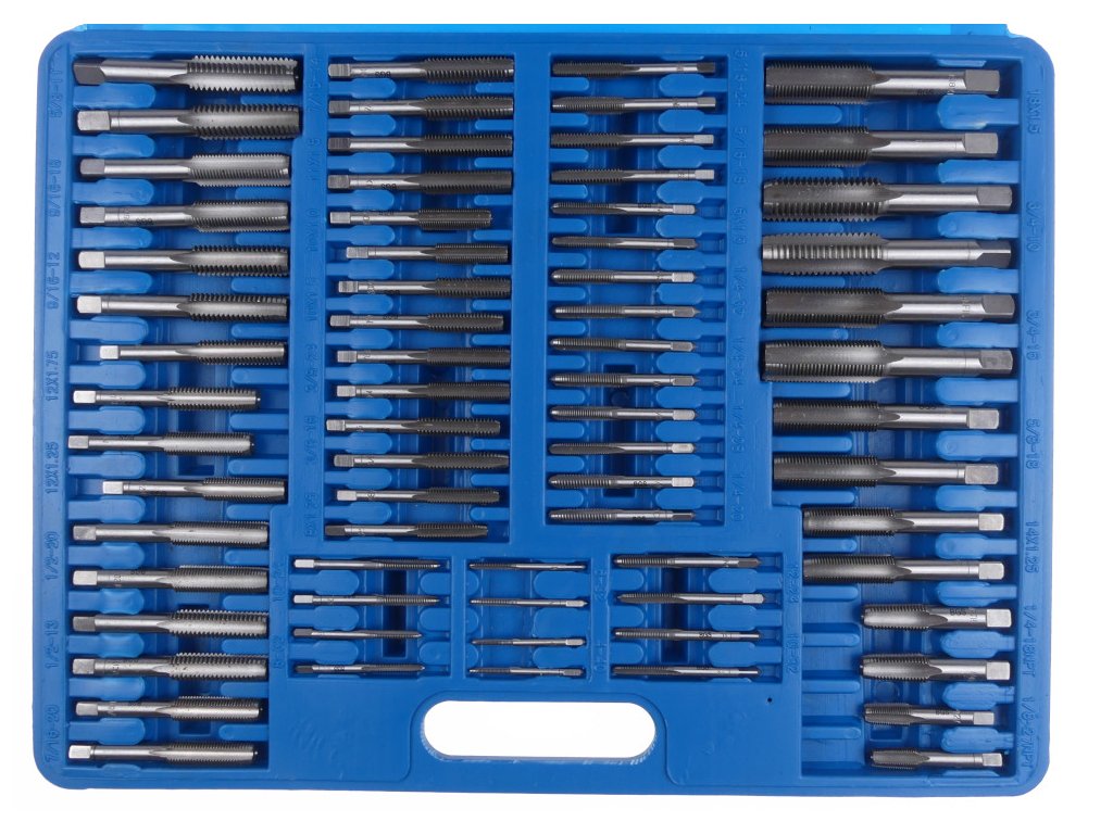 Speciální sada palcových i metrických závitníků a oček pro jemné závity, 110 ks – BGS technic 900.