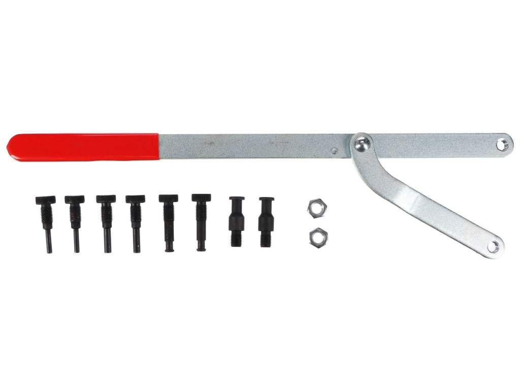 Praktická sada pro napínání řemenice je určena pro opravu motorů a napínání řemenů nejen do autodílny, ale také do domácí garáže. V sadě je obsaženo celkem 11 dílů, které zahrnují všechny důležité průměry.