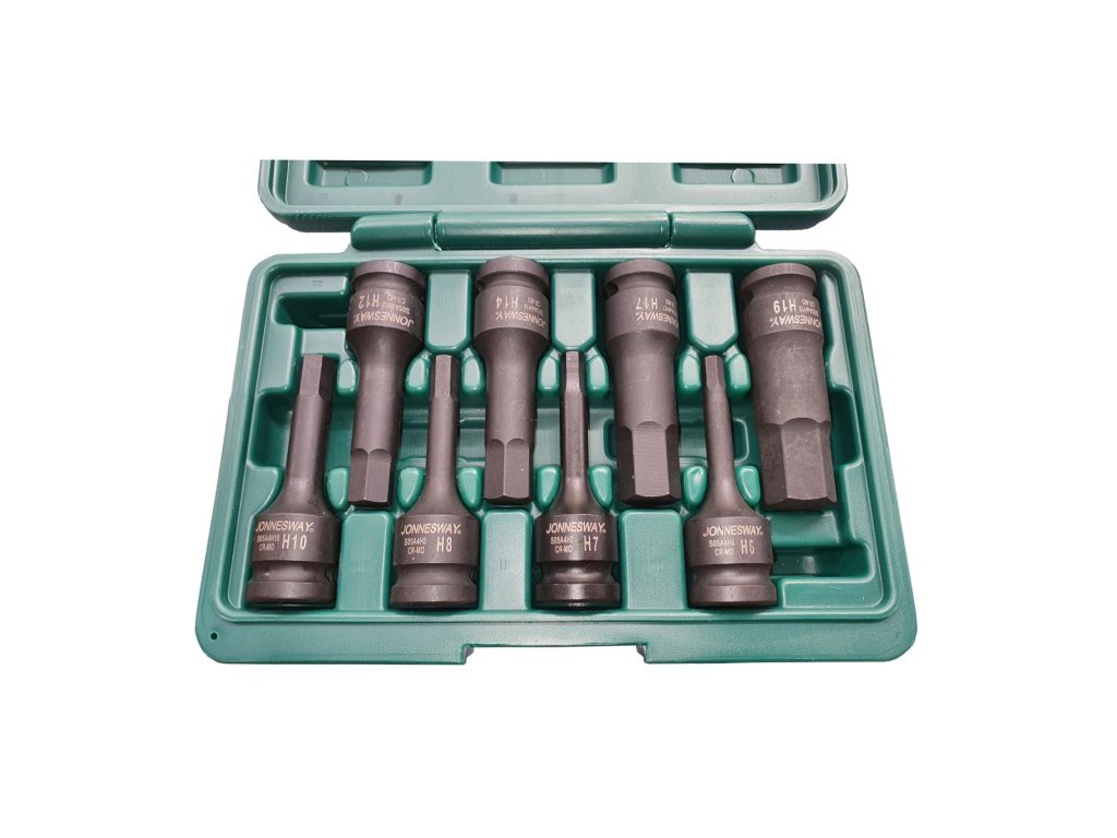 Robustní sada zástrčných imbusových hlavic značky JONNESWAY je určená pro rázové utahováky elektrické, akumulátorové i pneumatické.
