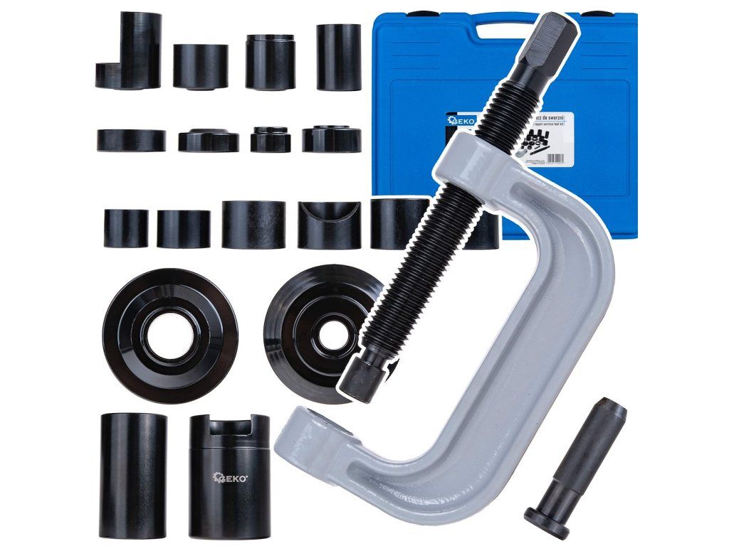 Přesný nástroj určený pro profesionály, který umožňuje rychlou a snadnou výměnu pouzder ramen řízení bez nutnosti demontáže celé sestavy. Díky tomu je práce efektivnější a šetří se čas i zdroje.