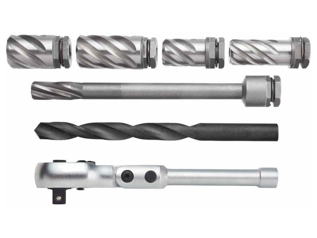 Obsahuje ráčnu, 5 výstružníků a spirálový vrták.