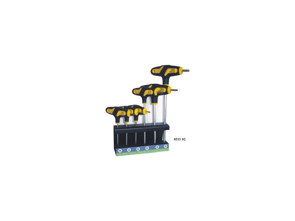 - Sada šroubováků 6-dílná zástrčných šestihranných IMBUS 2-6mm, L-klíč, Bi-plast T rukojeť, S-LINE, NAREX BYSTŘICE