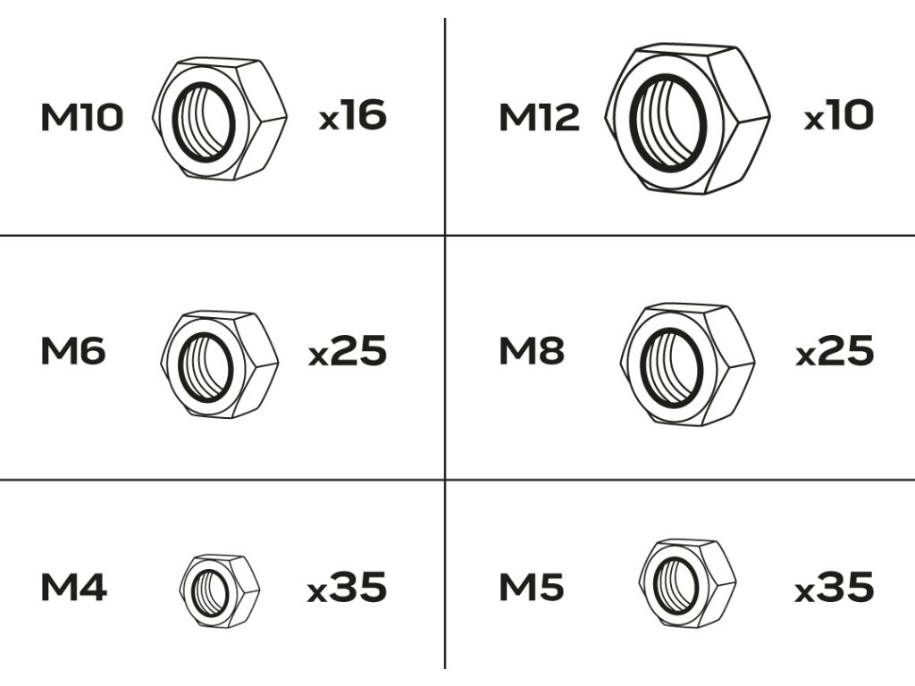 Samojistící matice, M4-M12, sada 146 ks - NEO tools 11-972