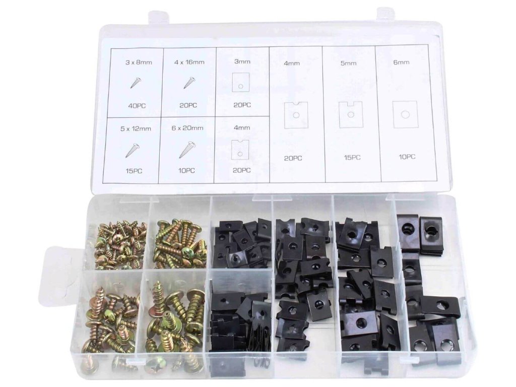 Souprava karosářských samořezných šroubů a pružných matic, 170 kusů v plastové krabičce – ASTA A-TC017