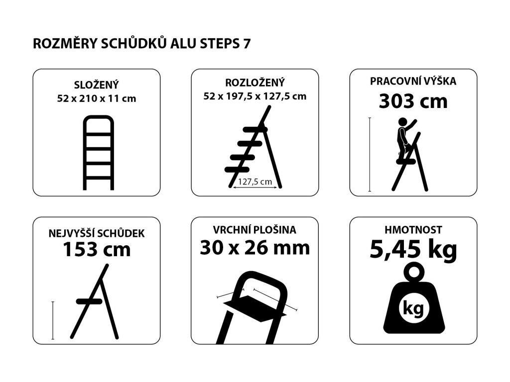 Schůdky - štafle hliníkové skládací, výška 153 cm, 7 stupňů - ALU STEPS 7