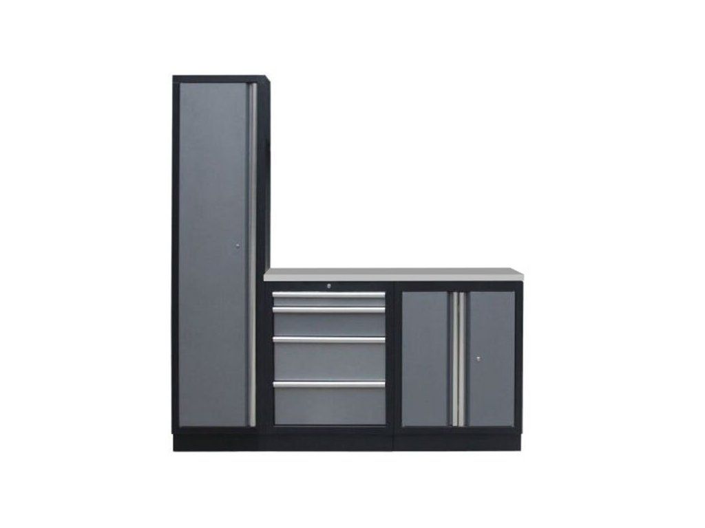 Celokovová moderní sestava dílenského nábytku – sestava skříní, zásuvek a nerezové pracovní desky – Genborx PROFI PRESTIGE COMBI 6A