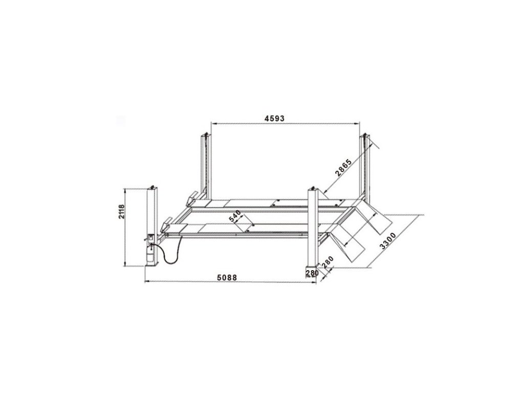 Čtyřsloupový zvedák 5 t pro geometrii s přizdvihem: