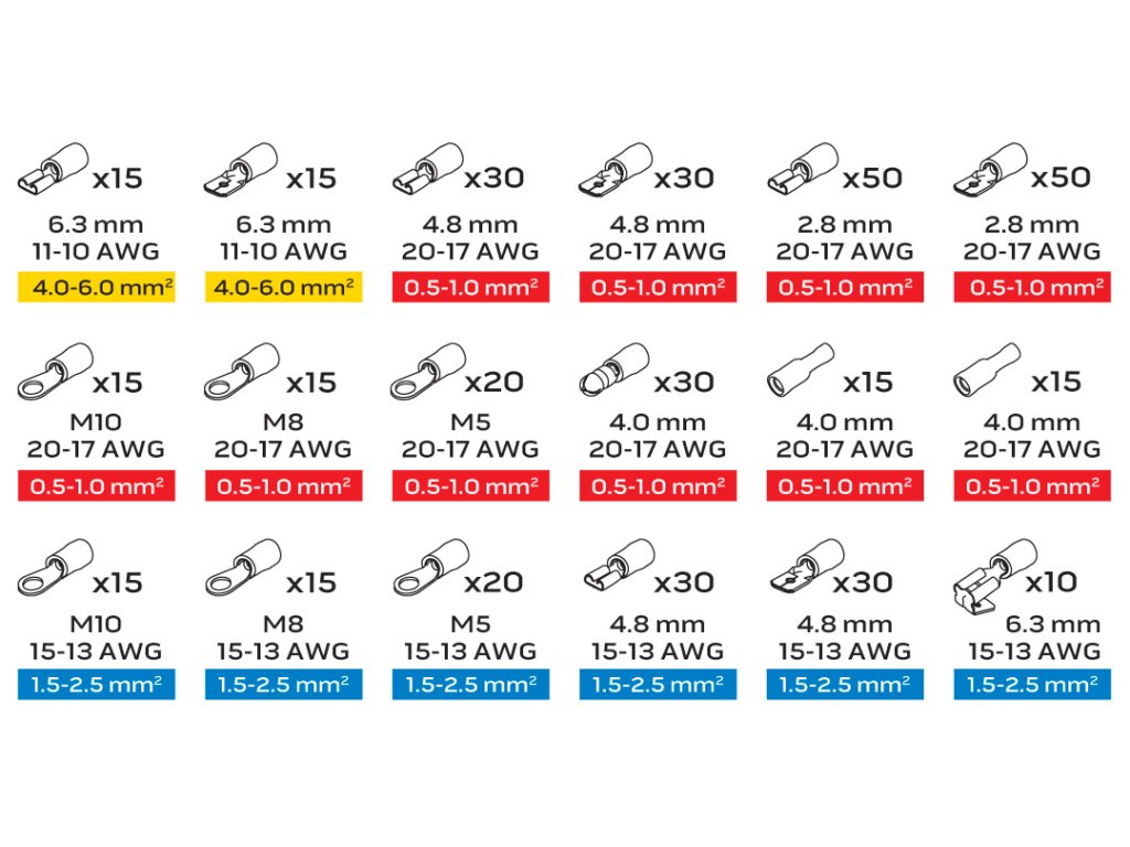 Všestranná sada elektrických izolovaných hliníkových konektorů je vhodný do každé dílny, garáže nebo servisu.