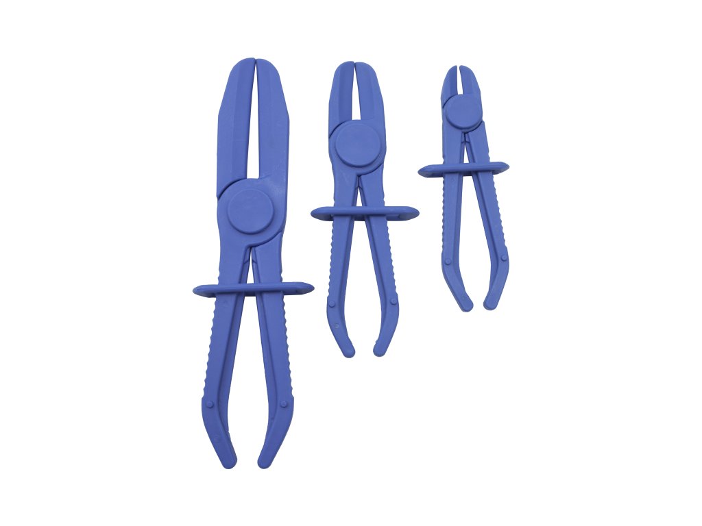 Souprava tří plastových kleští k sevření (zaškrcení) hadic o průměru až 60 mm. Typicky může jít o hadice palivového nebo chladícího systému, které je nutné kvůli servisu odpojit. Uškrcením hadic se zabrání zbytečnému úniku kapalin.