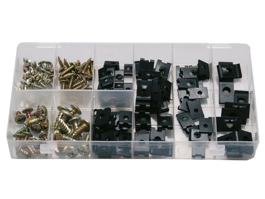 Sortiment kovových spon (svorek) a šroubků krytu motorů a podvozku automobilů, 170 dílů – BGS 8114.