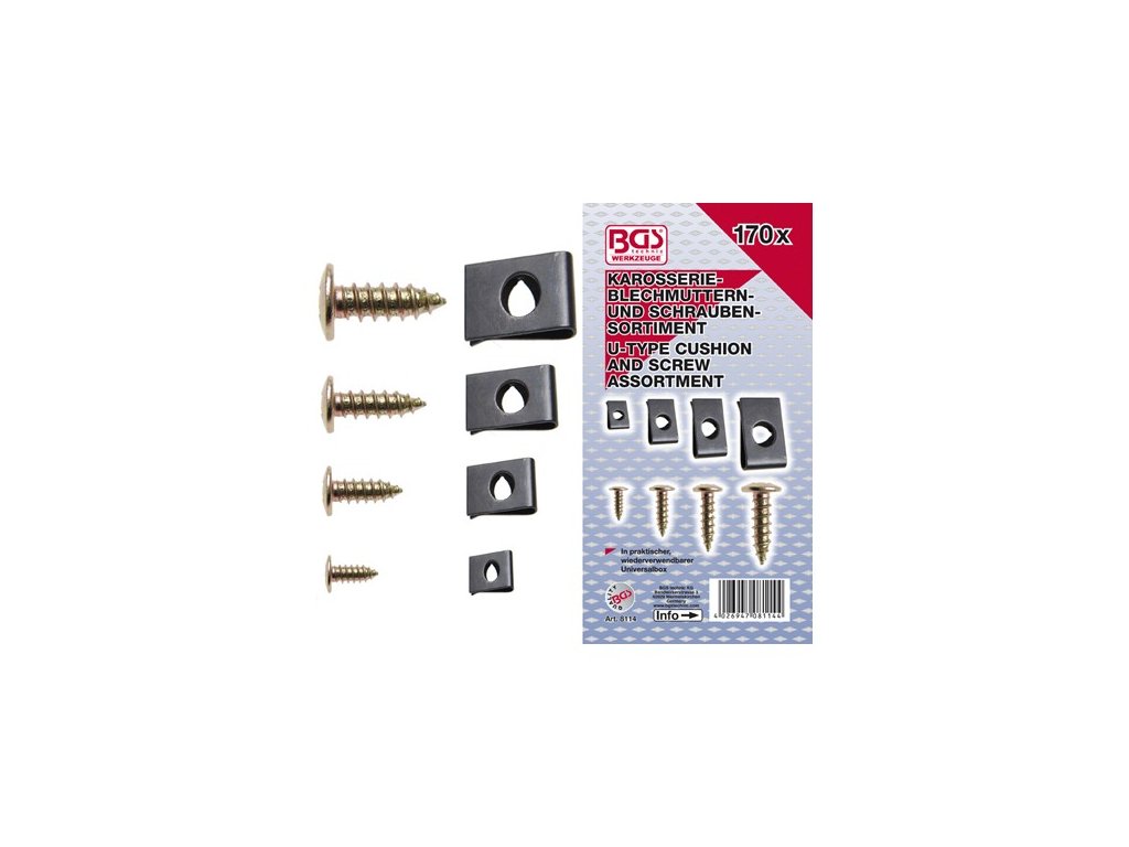 Sortiment spon a šroubků krytu motorů a podvozku automobilů 170 dílů - BGS 8114