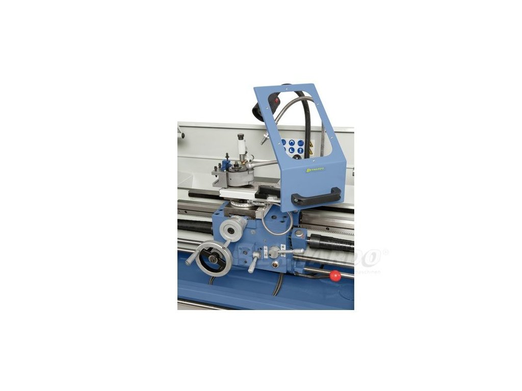 Dílenský soustruh na kovové materiály, elektrický 400 V, s vodicím a tažným šroubem, digitální systém měření, v sadě s rozsáhlým příslušenstvím – Bernardo Standard 165 Top
