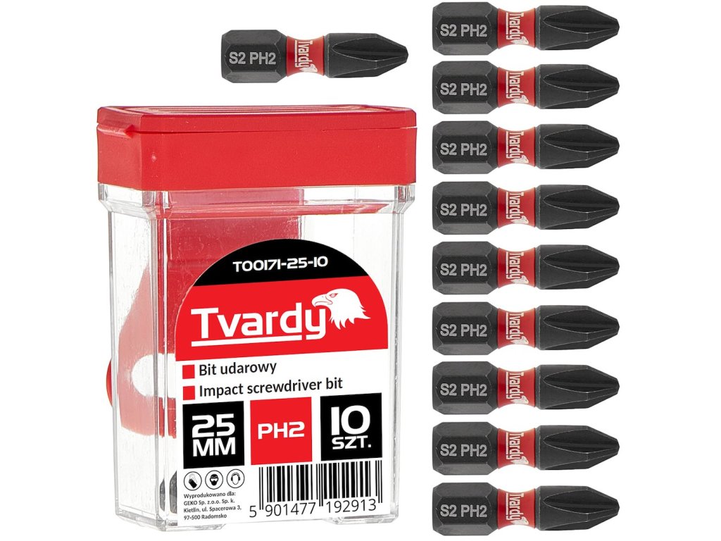Díky precizně zpracovanému profilu PH2 zajišťuje bit Tvardy dokonalou kompatibilitu se šrouby Phillips, čímž zabraňuje poškození a snižuje riziko sklouznutí. Jeho vynikající odolnost proti rázovým zatížením z něj činí ideální volbu jak pro každodenní úkoly, tak pro náročné montážní práce.